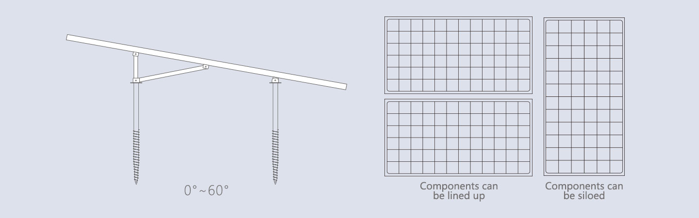 La estructura se puede ajustar con cierta tolerancia con este-oeste, oeste-sur y sur-norte direcciones, asegurando una instalación flexible en el sitio para lograr el mejor rendimiento de los módulos solares.